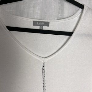 Habitat sweater,women,PTP 19.5” white cotton pull over,v neck,trim,EC
