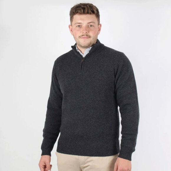 Hackett London Lambswool Preppy Old Money Half Zip Charcoal Jumper Sweater L