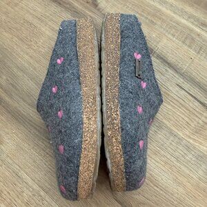 Haflinger Couricini Clogs Grey With Heart Embroidery Cozy Arch Support Wool 37