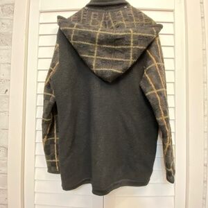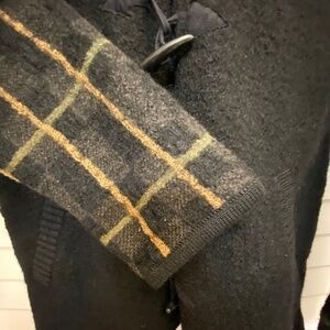 Haggar 100% wool jacket detachable hood black body with plaid sleeves and hood