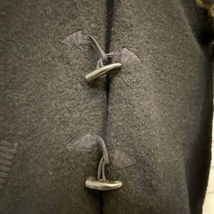 Very nice used condition ladies Haggar 100% wool jacket. Toggle closure. Faux front pocket detail with two lower interior pockets.