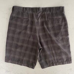 Haggar 1926 Casual 5 Pocket Polyester Plaid Bermuda Shorts Brown + Black Sz 40