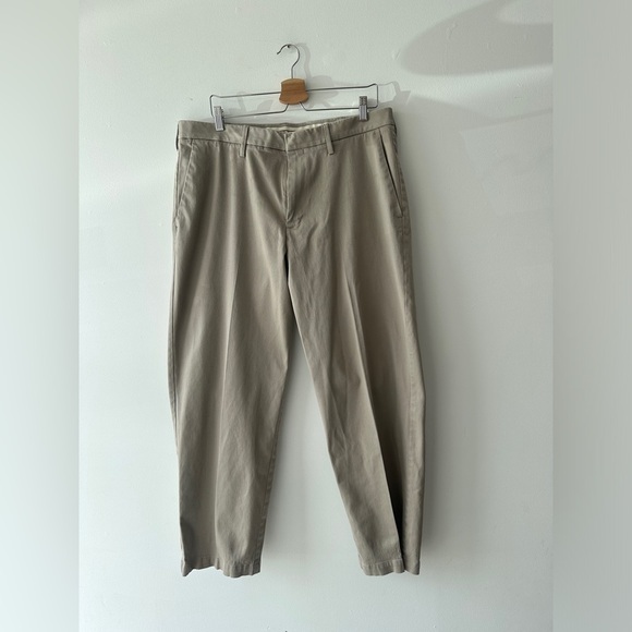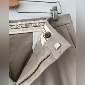 A great fitting pair of classic khaki pants. Flat front, pockets, belt loops.