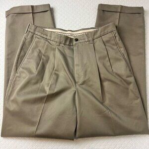 Haggar Men’s 34 X 32 Premium No Iron Cotton Khaki Pants Cuffed Hem Trousers Pleat