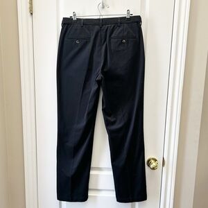 Classic black chinos by Haggar. Comfortable and stylish. Ideal for casual or formal wear.