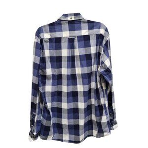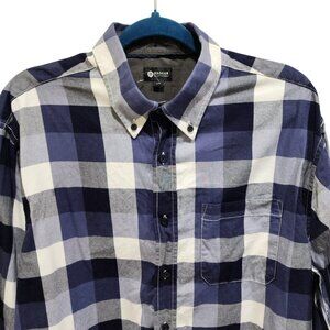 Haggar Men's L Long Sleeve Button Up Shirt Blue Gray White Plaid 100% Cotton