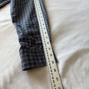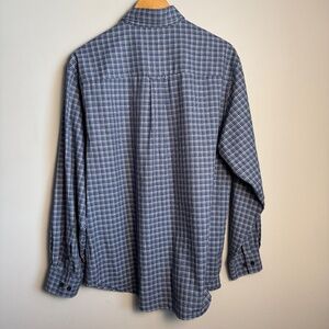 Haggar Men's L Mini-Plaid Long Sleeve Button Up Shirt Wrinkle-Resistant Blue