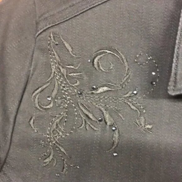 Haggar Moss Green Cotton Buttoned Jacket w/floral embroidery sz 16