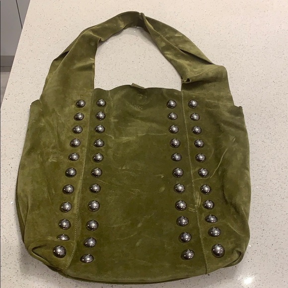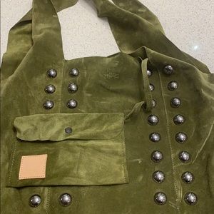Dark green suede Hags bag with pocket bag attached, brand new, never been used, made in italy