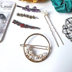 Hair accessory bundle - scrunchies, barrettes, & clips
