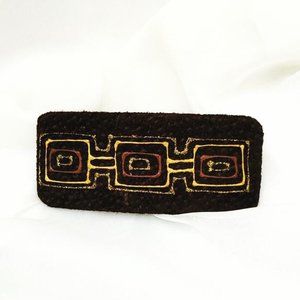 Handmade HairClip Brown Genuine Suede Clip-on hair accessories hand-painted geometric pattern in gold, glitters & brown colors