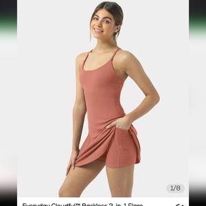 Super comfortable, form fitted, non-see through, flattering dress. can be worn for to workout, play tennis or even out on the town! Has a built in padded bra, and built in shorts with a hidden pocket. Brand new, never been worn. I bought it in two colors and decided to keep the other color. The color is coral blush pink.
