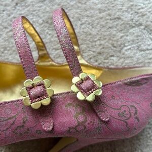 Hale Bob Rosy Mary Jane Pink and Gold Heels-Size 10