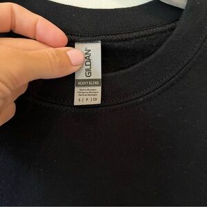 Classic black crewneck sweatshirt featuring “Half Cut Brewing Company” across the chest in bold silver text. Made by Gildan in their cozy Heavy Blend, this unisex pullover is a size Small and perfect for craft beer lovers or brewery merch collectors. Soft fleece interior, ribbed cuffs and hem, and timeless bar-style logo make it great for casual wear or layering.