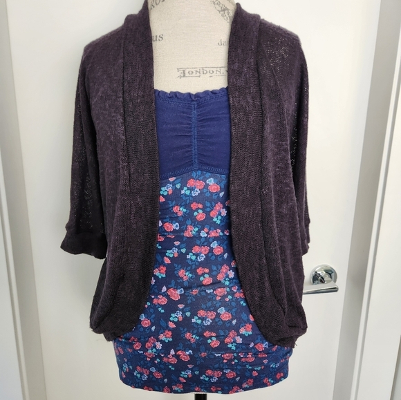 Charcoal Blue Knit Open front Half Sleeve Cardigan Sweater, LOVED by Heidi Klum.