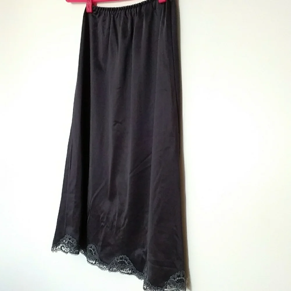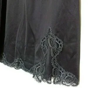 This black slip is adorned with lace at the hem, adding a touch of elegance to its design. Its slightly flared silhouette with a slit near the left knee ensures a graceful flow with every step.