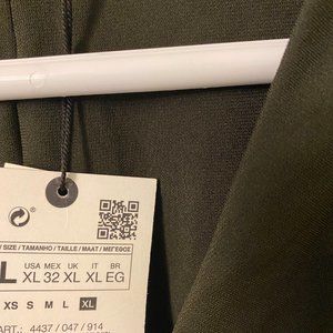 Dark green midi dress with long sleeves. The dress has a half zipper detail and side gatherings for a shaped fit.