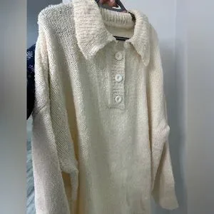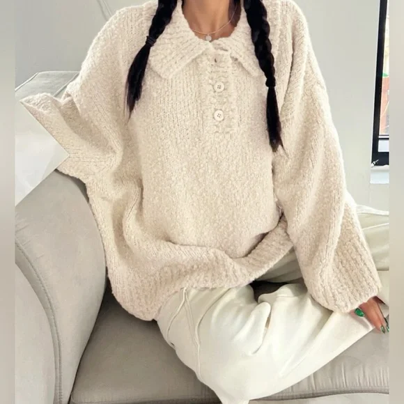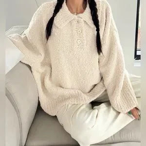 Half button drop shoulder sweater