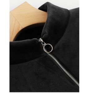 Half placket Zip Up Velvet Sweatshirt from ROMWE