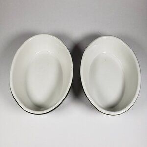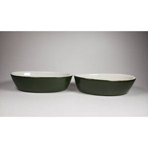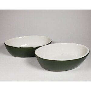 Pair of 6-inch oval "Boston Baker" dishes in Forest Green by Hall, USA.