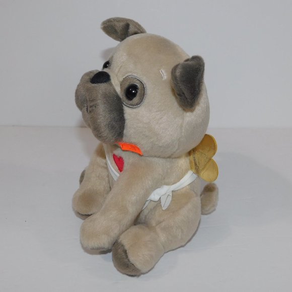 This super cute Hallmark Cu-Pug 7.5" Plush Stuffed Cupid Pug Puppy Dog is in Great clean displayed only condition with tush tag still attached at rear. Features Little Gold Wings on back, Red Heart on chest white sash around body.