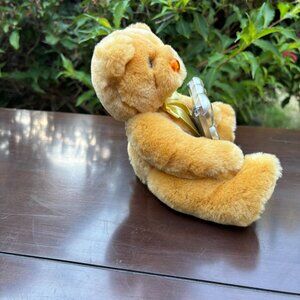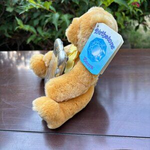 Adorable vintage Hallmark Birthstone Bear holding a detachable metallic-look plastic frame for a 6.5 × 9 cm (2.5" × 3.5") photo. This collectible plush bear celebrates the birth month with its coordinating “gemstone” color and symbolic meaning. November (Topaz): Golden plush fur with a yellow bow, symbolizing friendship, goodness, and strength. Frame can be displayed separately or kept with the bear for a charming birthstone keepsake. The bear has its birth month embroidered on the foot and comes with its original tag and booklet explaining the gemstone meaning. Approximate Size of Bear: 7" H × 7" W (18 × 18 cm) Condition: Good vintage condition with original tag and booklet. For ages 3+.