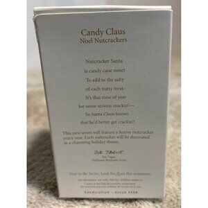 This handcrafted Hallmark Keepsake ornament features Candy Claus from the Noel Nutcrackers series. A festive addition to holiday decor, it showcases intricate details including a candy-themed base and vibrant colors. Ideal for collectors or as a charming seasonal display piece.