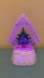 Charming holiday snow globe with colour changing lights. Features a festive Christmas tree with swirling glittering “snow”. Made from plastic. Makes a humming noise while running. 7-1/4” tall x 4-1/4” across x 4” wide Uses 3AAA batteries.