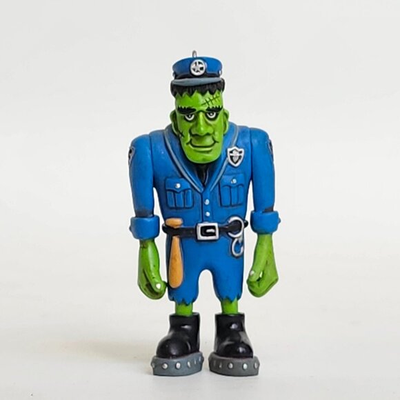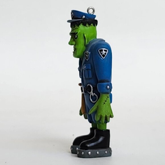 The ornament depicts a Frankenstein-like character dressed as a police officer.