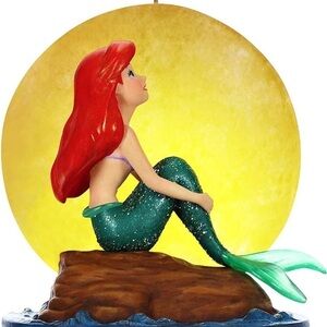 Make Ariel a part of your holiday decor with the Part of Your World Christmas ornament. Plays music and lights up a scene of the mermaid gazing at the moon (battery-operated).