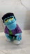 This adorable plush monster toy features a vibrant purple jacket and green striped shirt. Perfect for imaginative play and cuddling.