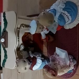 Vintage Hallmark The Bearingers ornament set. Includes 4 bears and fireplace. The bears can be put on a tree or on the fireplace display.