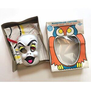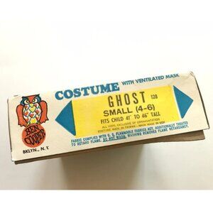 80s Ben Cooper Ghost Costume with Box Outfit and Mask Rare Collectible Masquerade Costume with Nite Owl Bright, Safe for Night.