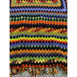 Halloween Granny Square Afghan Blanket Crochet Lap Throw Colorful Handmade