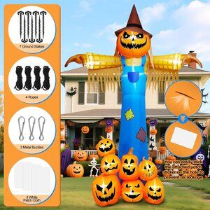 ⚡Halloween Inflatables with Music, Kalolary Giant Pumpkin Scarecrow Inflatable