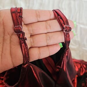 Halloween Metallic Twisted Front Spaghetti Straps Maxi Dress Small RubyRed