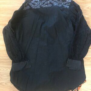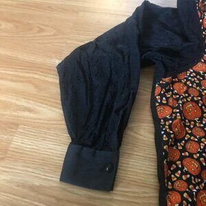 Halloween Pumpkin, Candy Corn, Bats Button-Up Shirt Handmade Size L