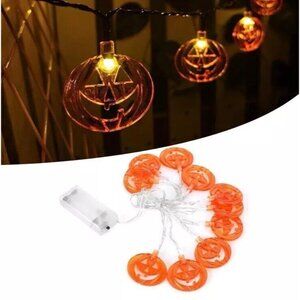 Halloween Pumpkin String Lights 10 LED 6.5ft Orange Pumpkin Fall Party Decor New