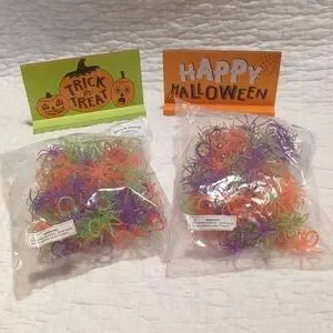 In this Halloween bundle there are 2x bags of 144 pieces of spider rings. There are also two wooden Halloween signs "Trick or Treat" and "Happy Halloween".