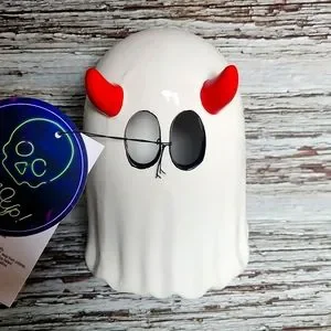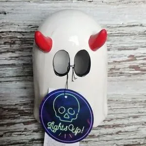 cute little ghost with devil horns lights up roughly 6" tall ceramic