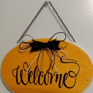 Painted 10x10 wood plaque with ribbons and vinyl for the letter.