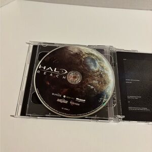 Set of three Halo soundtrack CDs. Includes Halo 3, Halo ODST, and Halo Reach. The discs have some signs of light scratching, see pictures for condition. The swing arm for the disc holder for Halo ODST is broken.