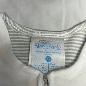Halo - Striped Gray and White cotton sleep sack with elephant design