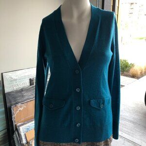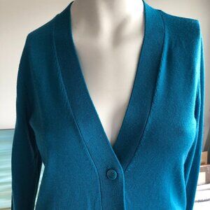 Halogen 100% Wool Knit Cardigan Teal Blue Size S