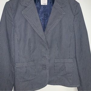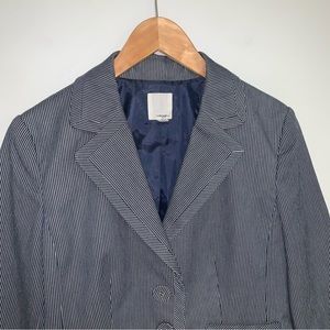 Halogen Blazer Jacket Women’s Size Large Blue White Pinstripe 3-Button Business