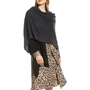 This sumptuous cashmere wrap is split down the middle into solid and heathered tones for a contemporary color-blocked look.