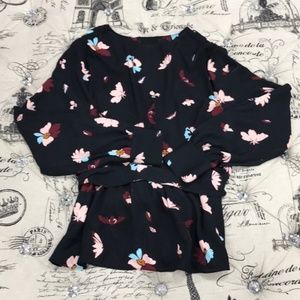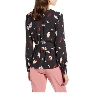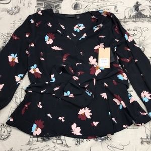 A choice of lively prints updates this everyday-romantic blouse in a faux-wrap peplum cut finished with a waist-slimming sash.