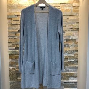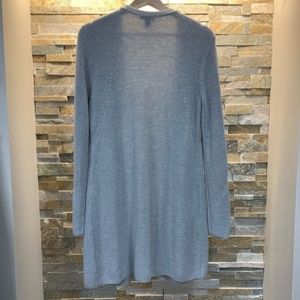 An open-front cardigan in a selection of fresh colors and everyday neutrals offers a long length of coziness in a ribbed knit with a kiss of cashmere.