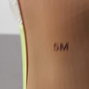 These shoes are in good condition although there is a scuff on the right shoe towards the front and slight damage on the right heel.