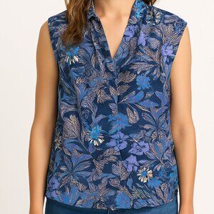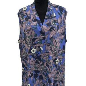 Halogen Nordstrom Floral Chic Sleeveless V Neck Blouse Vibrant Top Size Med